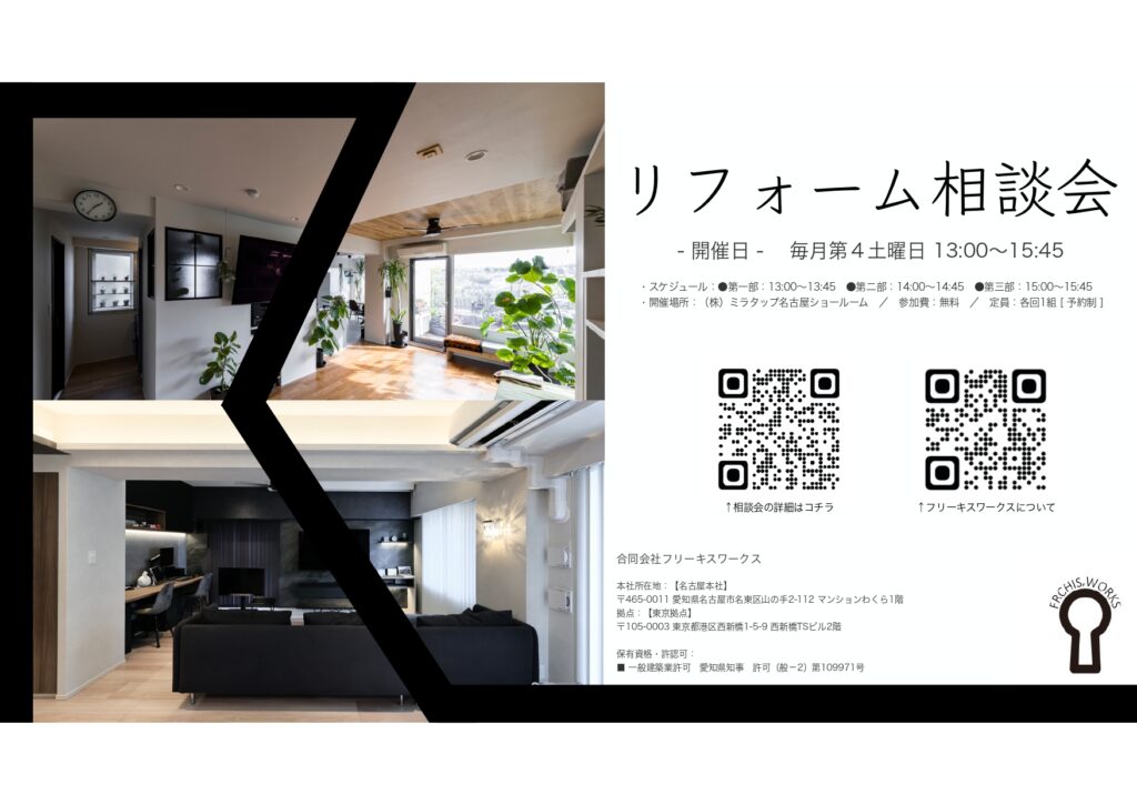 2025年10月25日(土)にミラタップ 名古屋ショールームで開催される、リフォーム相談会に参加いたします。